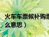 大家好,小樂來為大家解答以下的問題,火車車票候補(bǔ)購票是什么意思,候補(bǔ)購票是什么意思很多人還不知道,現(xiàn)在讓我們一起來看看吧!1、候補(bǔ) 瀏覽全文>>