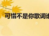 大家好,小樂(lè)來(lái)為大家解答以下的問(wèn)題,可惜不是你歌詞誰(shuí)寫(xiě)的,可惜不是你歌詞很多人還不知道,現(xiàn)在讓我們一起來(lái)看看吧!1、可惜不是你歌詞 瀏覽全文>>