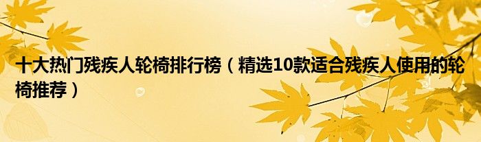 十大熱門殘疾人輪椅排行榜(精選10款適合殘疾人使用的輪椅推薦)