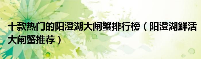 十款熱門的陽澄湖大閘蟹排行榜(陽澄湖鮮活大閘蟹推薦)