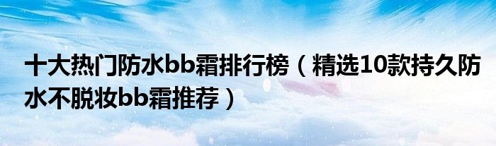 大家好,樂天來為大家解答以下問題,十大熱門防水bb霜排行榜,精選10款持久防水不脫妝bb霜推薦很多人還不知道,現(xiàn)在讓我們一起來看看吧!