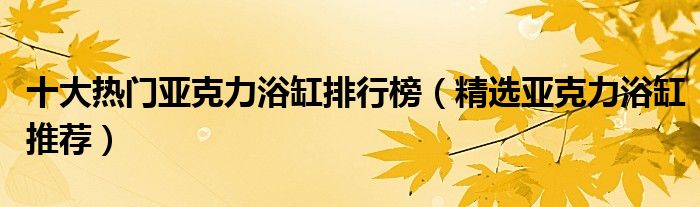 十大熱門(mén)亞克力浴缸排行榜(精選亞克力浴缸推薦)
