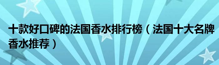 十款好口碑的法國香水排行榜(法國十大名牌香水推薦)