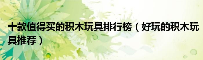 大家好,樂天來為大家解答以下問題,十款值得買的積木玩具排行榜,好玩的積木玩具推薦很多人還不知道,現(xiàn)在讓我們一起來看看吧!