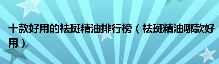 十款好用的祛斑精油排行榜(祛斑精油哪款好用)