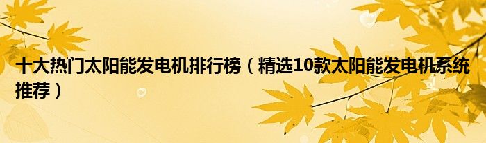 十大熱門太陽(yáng)能發(fā)電機(jī)排行榜(精選10款太陽(yáng)能發(fā)電機(jī)系統(tǒng)推薦)