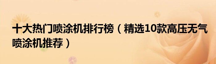 大家好,樂天來為大家解答以下問題,十大熱門噴涂機(jī)排行榜,精選10款高壓無氣噴涂機(jī)推薦很多人還不知道,現(xiàn)在讓我們一起來看看吧!