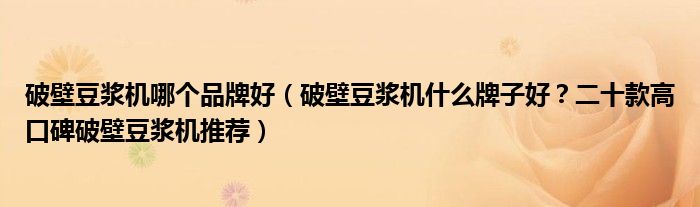 破壁豆?jié){機(jī)哪個(gè)品牌好(破壁豆?jié){機(jī)什么牌子好?二十款高口碑破壁豆?jié){機(jī)推薦)