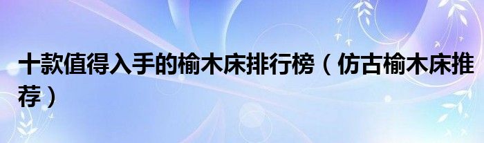 大家好,樂天來為大家解答以下問題,十款值得入手的榆木床排行榜,仿古榆木床推薦很多人還不知道,現(xiàn)在讓我們一起來看看吧!
