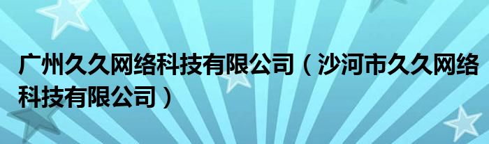 廣州久久網(wǎng)絡(luò)科技有限公司(沙河市久久網(wǎng)絡(luò)科技有限公司)