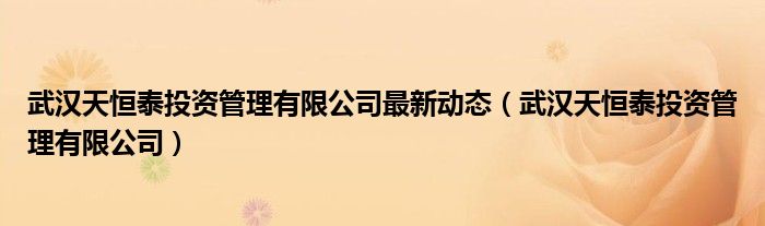 武漢天恒泰投資管理有限公司最新動(dòng)態(tài)(武漢天恒泰投資管理有限公司)