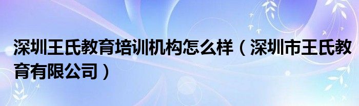 深圳王氏教育培訓(xùn)機(jī)構(gòu)怎么樣(深圳市王氏教育有限公司)