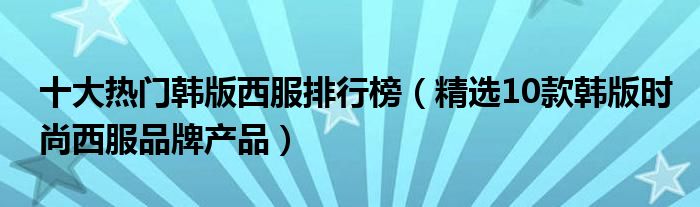 十大熱門(mén)韓版西服排行榜(精選10款韓版時(shí)尚西服品牌產(chǎn)品)