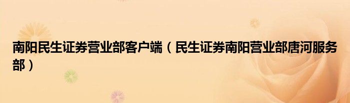 南陽(yáng)民生證券營(yíng)業(yè)部客戶端(民生證券南陽(yáng)營(yíng)業(yè)部唐河服務(wù)部)