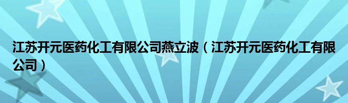 江蘇開元醫(yī)藥化工有限公司燕立波(江蘇開元醫(yī)藥化工有限公司)