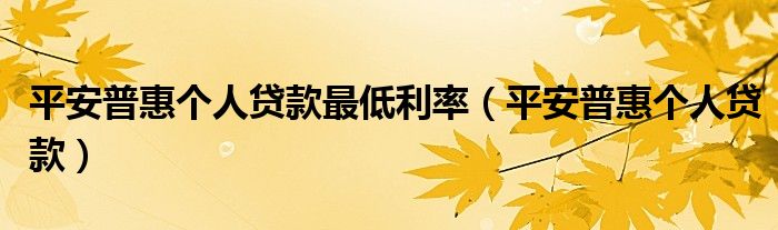 平安普惠個(gè)人貸款最低利率(平安普惠個(gè)人貸款)