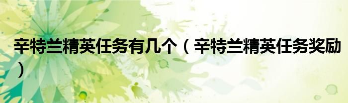 辛特蘭精英任務有幾個(辛特蘭精英任務獎勵)