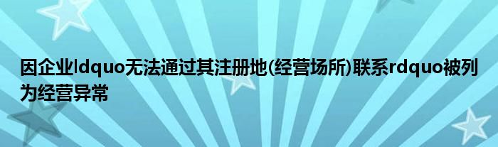 因企業(yè)ldquo無法通過其注冊地(經營場所)聯系rdquo被列為經營異常
