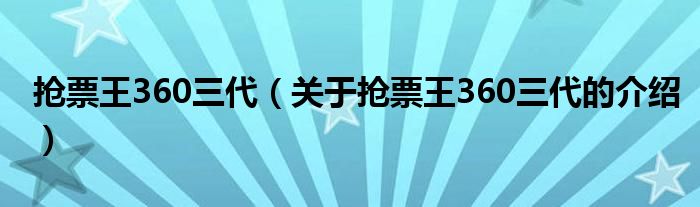 搶票王360三代(關(guān)于搶票王360三代的介紹)