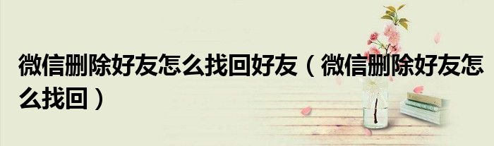 微信刪除好友怎么找回好友(微信刪除好友怎么找回)