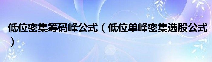 低位密集籌碼峰公式(低位單峰密集選股公式)