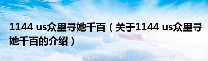 1144 us眾里尋她千百(關(guān)于1144 us眾里尋她千百的介紹)