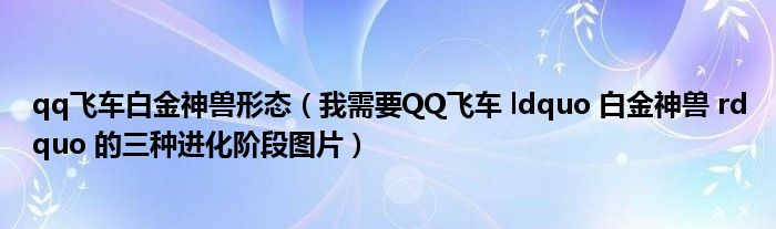 qq飛車白金神獸形態(tài)(我需要QQ飛車 ldquo 白金神獸 rdquo 的三種進(jìn)化階段圖片)