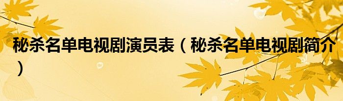秘殺名單電視劇演員表(秘殺名單電視劇簡介)