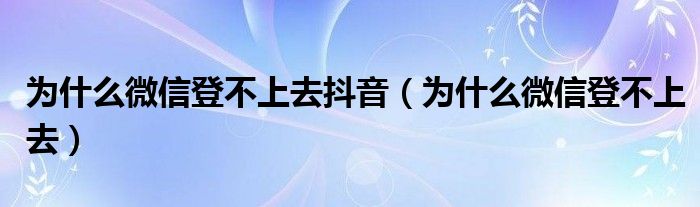 為什么微信登不上去抖音(為什么微信登不上去)