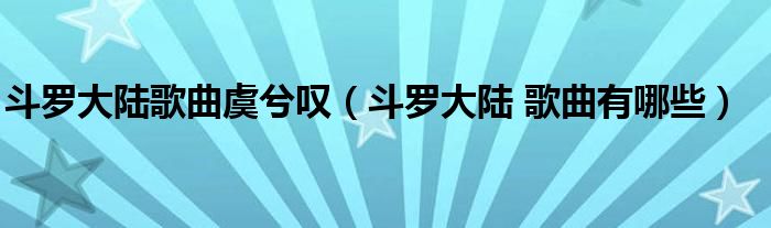 斗羅大陸歌曲虞兮嘆(斗羅大陸 歌曲有哪些)
