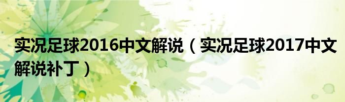 實(shí)況足球2016中文解說(實(shí)況足球2017中文解說補(bǔ)?。?/h1>
