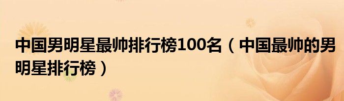 大家好,小聯(lián)來為大家解答以上的問題。中國男明星最帥排行榜100名,中國最帥的男明星排行榜這個(gè)很多人還不知道,現(xiàn)在讓我們一起來看看吧!