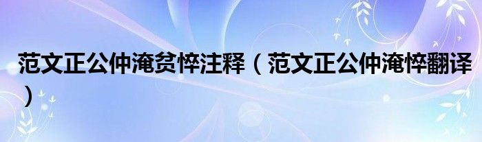 范文正公仲淹貧悴注釋(范文正公仲淹悴翻譯)
