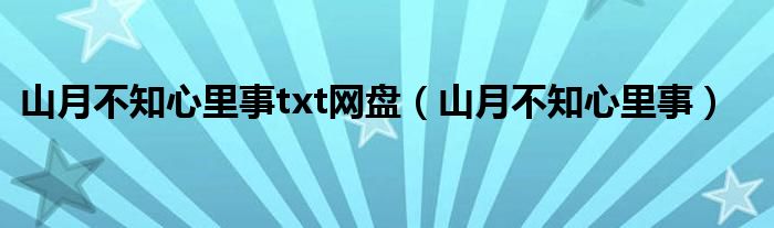 山月不知心里事txt網(wǎng)盤(山月不知心里事)