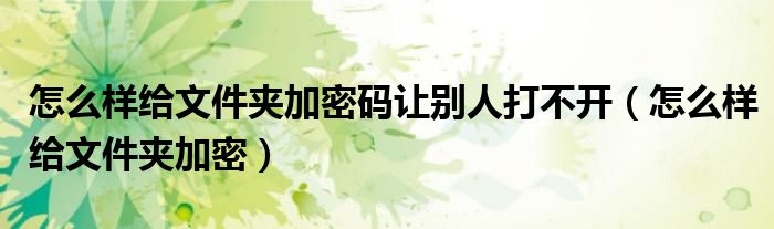 怎么樣給文件夾加密碼讓別人打不開(kāi)(怎么樣給文件夾加密)
