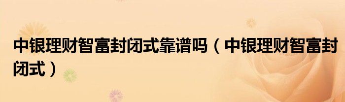 中銀理財(cái)智富封閉式靠譜嗎(中銀理財(cái)智富封閉式)