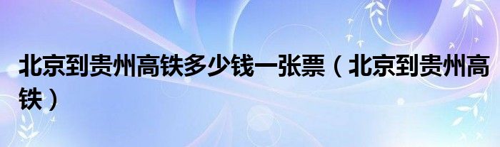北京到貴州高鐵多少錢一張票(北京到貴州高鐵)