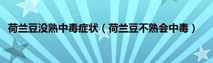 荷蘭豆沒(méi)熟中毒癥狀(荷蘭豆不熟會(huì)中毒)