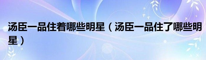 湯臣一品住著哪些明星(湯臣一品住了哪些明星)