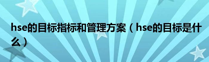 hse的目標(biāo)指標(biāo)和管理方案(hse的目標(biāo)是什么)