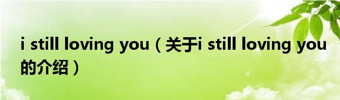 大家好,小虎來為大家解答以上的問題。i still loving you,關(guān)于i still loving you的介紹很多人還不知道,現(xiàn)在讓我們一起來看看吧!