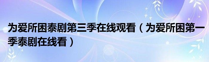 為愛所困泰劇第三季在線觀看(為愛所困第一季泰劇在線看)