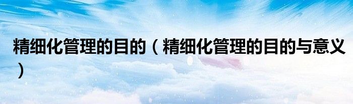精細(xì)化管理的目的(精細(xì)化管理的目的與意義)