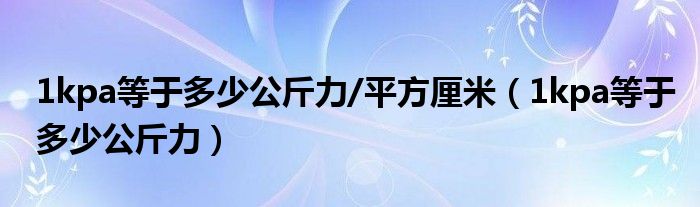 1kpa等于多少公斤力/平方厘米(1kpa等于多少公斤力)