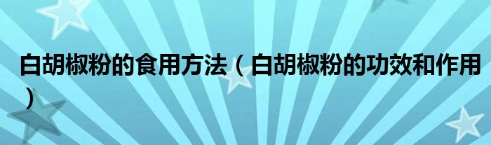 白胡椒粉的食用方法(白胡椒粉的功效和作用)