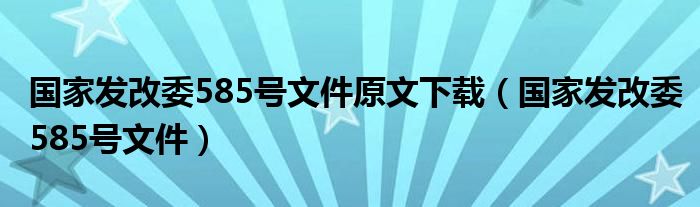 國(guó)家發(fā)改委585號(hào)文件原文下載(國(guó)家發(fā)改委585號(hào)文件)