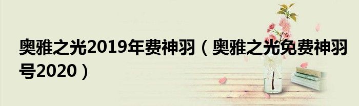 奧雅之光2019年費神羽(奧雅之光免費神羽號2020)