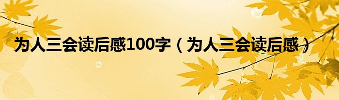 為人三會(huì)讀后感100字(為人三會(huì)讀后感)