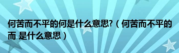 何苦而不平的何是什么意思?(何苦而不平的 而 是什么意思)