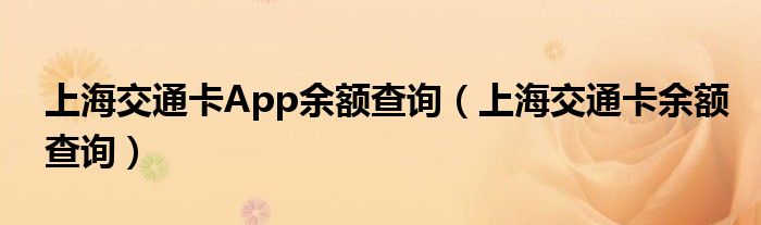 上海交通卡App余額查詢(上海交通卡余額查詢)